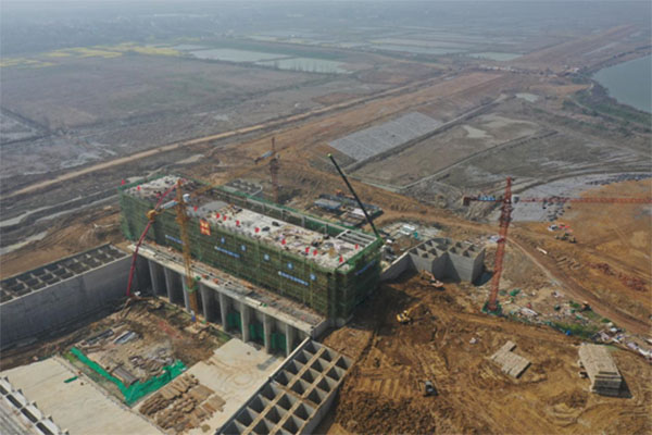 引江濟淮派河口泵站主廠房順利封頂