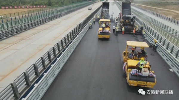 合肥西大門的312國(guó)道,交通量非常大,我們項(xiàng)目部也是攻堅(jiān)克難,盡早地把這個(gè)橋開(kāi)通,這個(gè)鋪裝完成以后,進(jìn)行整個(gè)橋的動(dòng)靜態(tài)試驗(yàn),七月下旬交工驗(yàn)收。