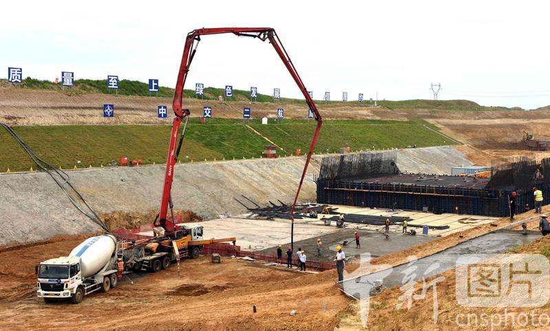 2020年8月7日,在引江濟(jì)淮工程安徽省合肥市廬江縣萬(wàn)山鎮(zhèn)永橋村廬江船閘施工現(xiàn)場(chǎng),中交第二航務(wù)工程局有限公司的建設(shè)者們用挖掘機(jī)正在緊張施工取土,運(yùn)輸土方工程車(chē)川流不息,船閘底部混凝土澆筑正在施工,建設(shè)現(xiàn)場(chǎng)一片繁忙景象。當(dāng)日是農(nóng)歷二十四節(jié)氣中“立秋”節(jié)氣,中交第二航務(wù)工程局有限公司的建設(shè)者們抓住秋后晴天少雨,及時(shí)排澇施工,搶抓工程進(jìn)度。