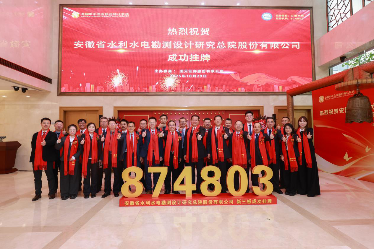 從佛子嶺水庫到淠史杭灌區(qū),從淮河上的 “三峽工程——臨淮崗洪水控制工程到安徽基礎(chǔ)設(shè)施一號工程引江濟淮工程,安徽水研數(shù)十年如一日,始終緊跟國家水利基礎(chǔ)設(shè)施建設(shè)與生態(tài)文明建設(shè)導向,長期服務(wù)安徽水利頂層規(guī)劃論證,深耕水利水電勘測設(shè)計領(lǐng)域,是區(qū)域水利建設(shè)的中堅力量。此次登陸新三板,安徽水研將借助全國股轉(zhuǎn)公司這一國家級平臺,進一步匯聚優(yōu)質(zhì)資源、激活發(fā)展新動能,在規(guī)范治理中提升核心競爭力,在資本運作中拓寬發(fā)展空間深刻踐行節(jié)水優(yōu)先、空間均衡、系統(tǒng)治理、兩手發(fā)力的新時期治水思路,以資本市場為依托,書寫水利事業(yè)高質(zhì)量發(fā)展的新華章。