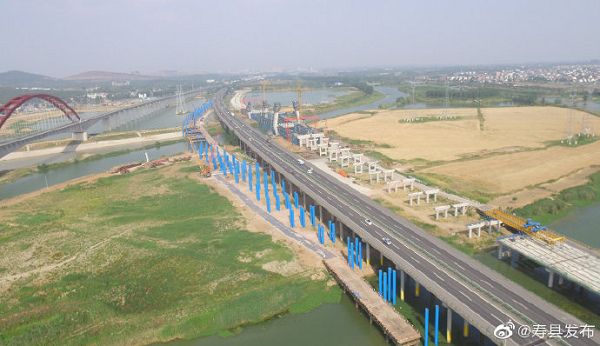 引江濟(jì)淮工程S12高速淮河大橋四號(hào)橋改建工程位于壽縣境內(nèi),交叉處合淮阜高速公路淮河4號(hào)橋?yàn)榛春犹卮髽虻囊徊糠郑昂蠊?4.176公里橋梁,現(xiàn)狀跨引江濟(jì)淮河道為(55+100+65)米變截面連續(xù)梁橋,引橋采用30米先簡(jiǎn)支后連續(xù)裝配式小箱梁。